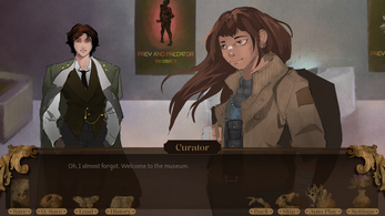 Loved the art and writing in this! Midway through I joked in my head that I hoped the game let you romance the Curator and was so pleasantly surprised that turned out to be a real possibility :’]