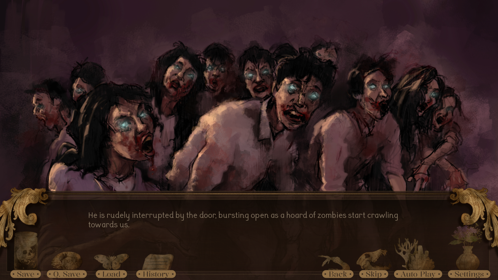 This was so fun and really well done. The art, especially for the zombies, was great! I love the style. The voice acting was beautiful <3 The story was so addicting. There are so many choices and so many endings! I got hooked so fast. I love that you can play it as just straight up horror or as a twisted romance lol.
